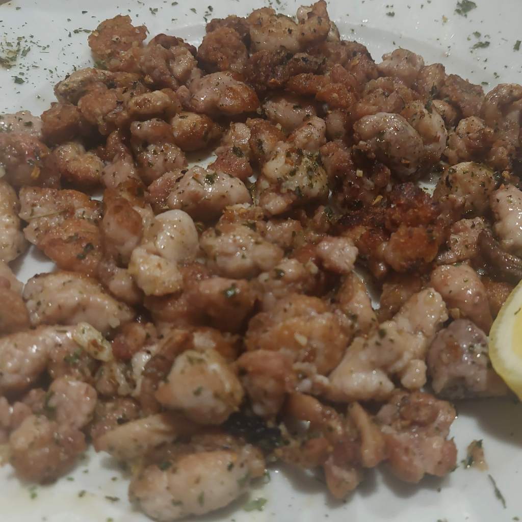 Seguimos el homenaje con una tremenda ración de mollejas de cordero. Sabrosísimas y en su punto de brasa.