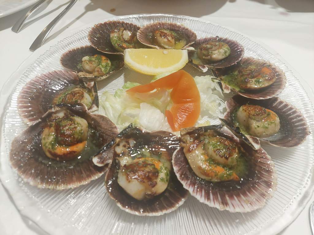 Buena la ración de zamburiñas (o más bien volandeiras) a la plancha.