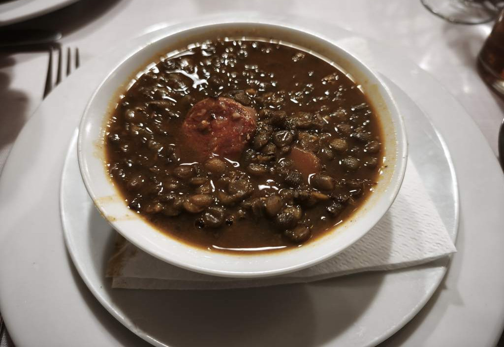 Qué mejor que algo de cuchareo para comenzar una buena comida. Compartimos unas lentejas de la casa, y tienen del detalle de presentarlo en raciones individuales.