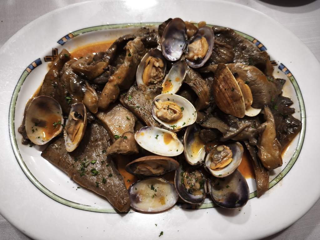 Seguimos con una de las especialidades de la casa: Almejas Jacinto. Almejas frescas guisadas con setas, ajo, vino blanco y perejil.