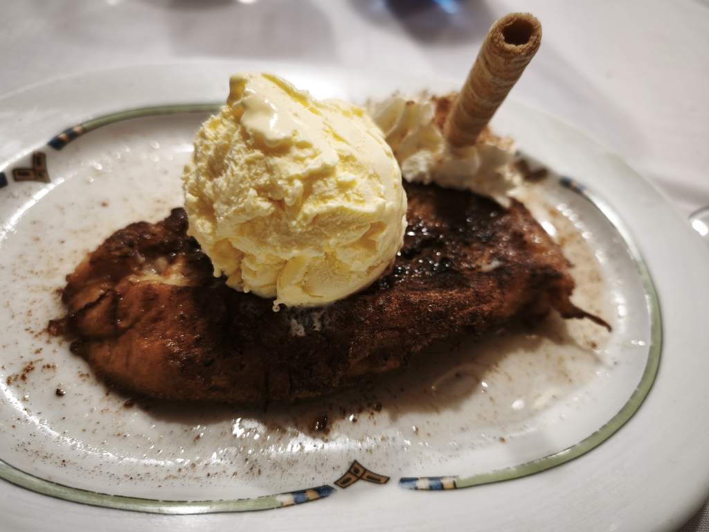 La parte dulce fue una torrija con helado de vainilla.
