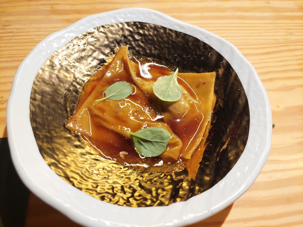 11 – NAKEIMA (Chamberí, Madrid): Wonton Conejo: un ravioli relleno de conejo guisado con cebolla y vino blanco sobre una salsa de mantequilla con ajo. ¡Esa salsa de mantequilla es adictiva!