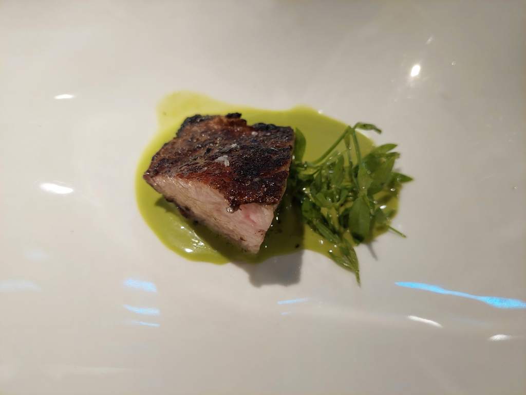 Qué difícil escoger solo un plato de una gran comida. Me quedo con su pincho de col a la brasa con chancaca, saikyo miso y quinoa furikake, que saquen ese sabor a una simple col es una maravilla.