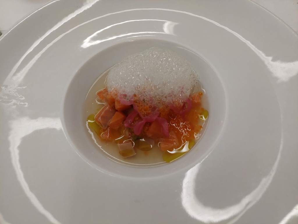 Su trucha de Cazorla macerada en pipirrana jienense es espectacular. Qué finura. Platazo.
