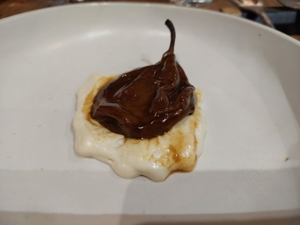5. Bagá (Jaén): pera oxidada con piel de anguila ahumada. La innovación, la búsqueda arriesgada de nuevos sabores. Todo lo que diga es poco.