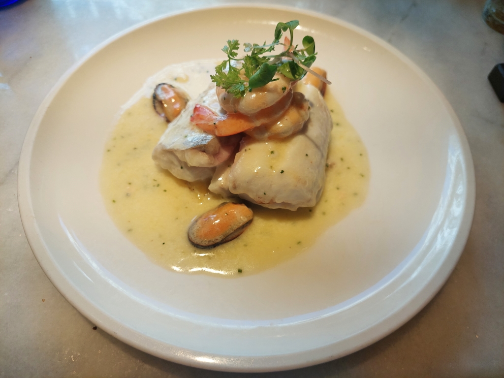 5 – LA PRIMERA (Centro, Madrid): Merluza meuniere de 1981, rellena de salmón ahumado y con una salsa donde la mantequilla realza el sabor del pescado y no lo cubre.