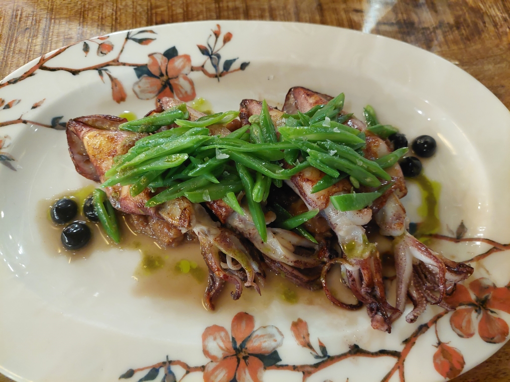 7 – LA SUCULENTA (Benicassim, Castellón): Chipirones en salsa acompañados con tirabeques en juliana.