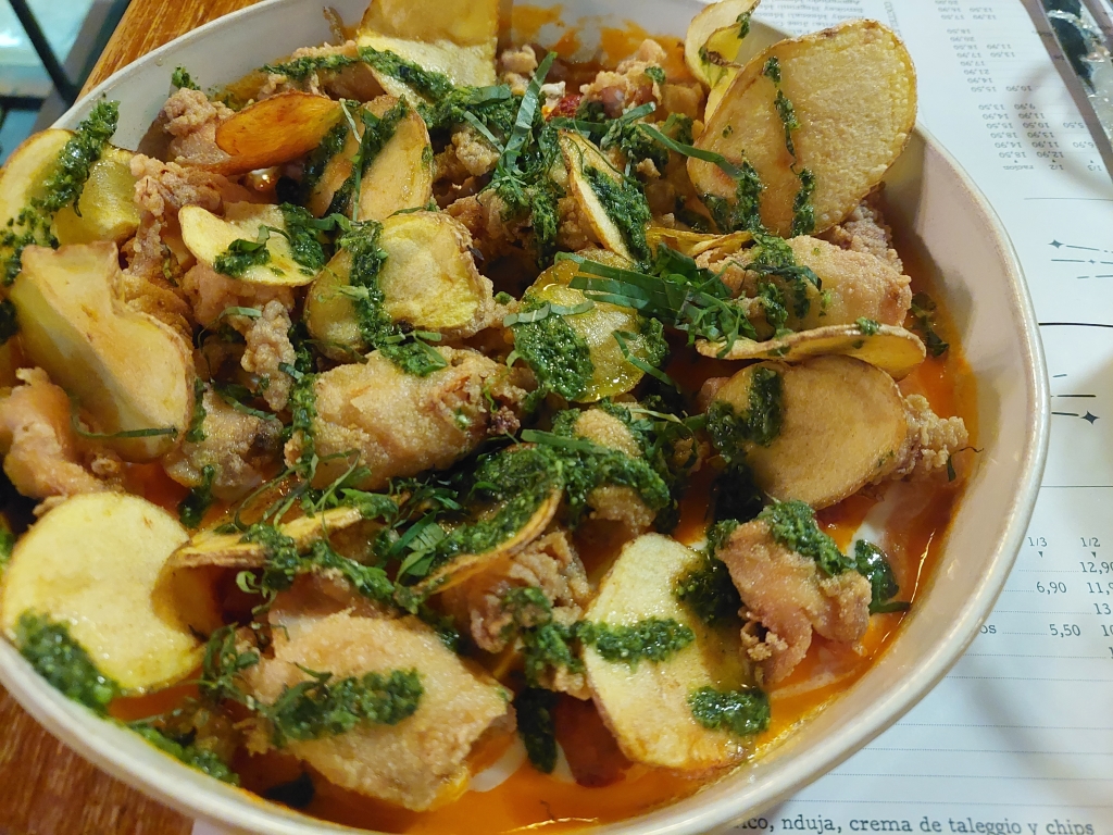 9 – TATEMA (Lavapiés, Madrid): Chopitos fritos con pesto cítrico, nduja y crema de taleggio.