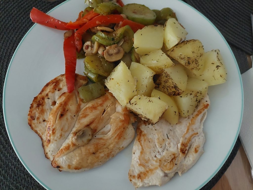 27 de agosto: Sin autor. Pechuga de pollo con sus patatas y verdura de contorno