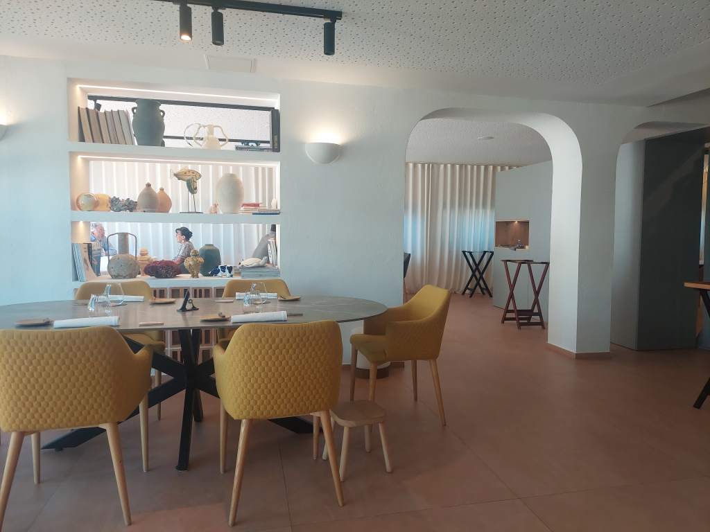 Tras una reciente renovación, el restaurante se presenta como un espacio luminoso y acogedor, con paredes blancas, tonos terracota y una decoración claramente inspirada en la estética mediterránea.