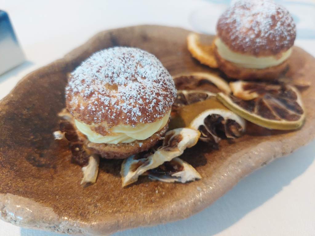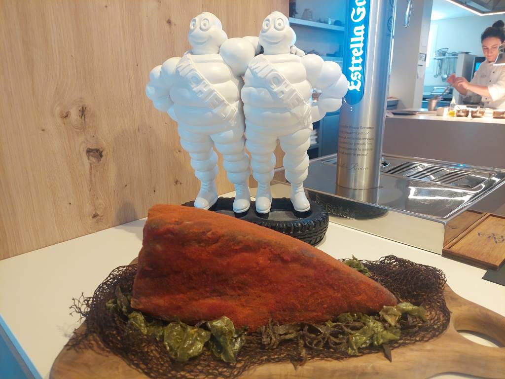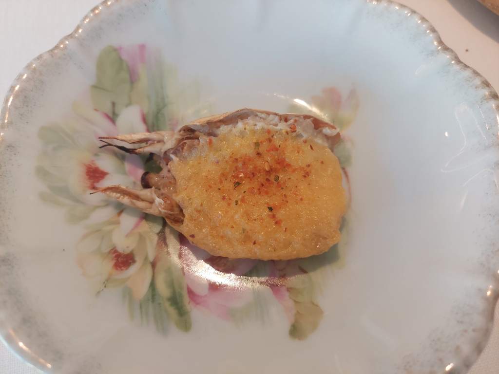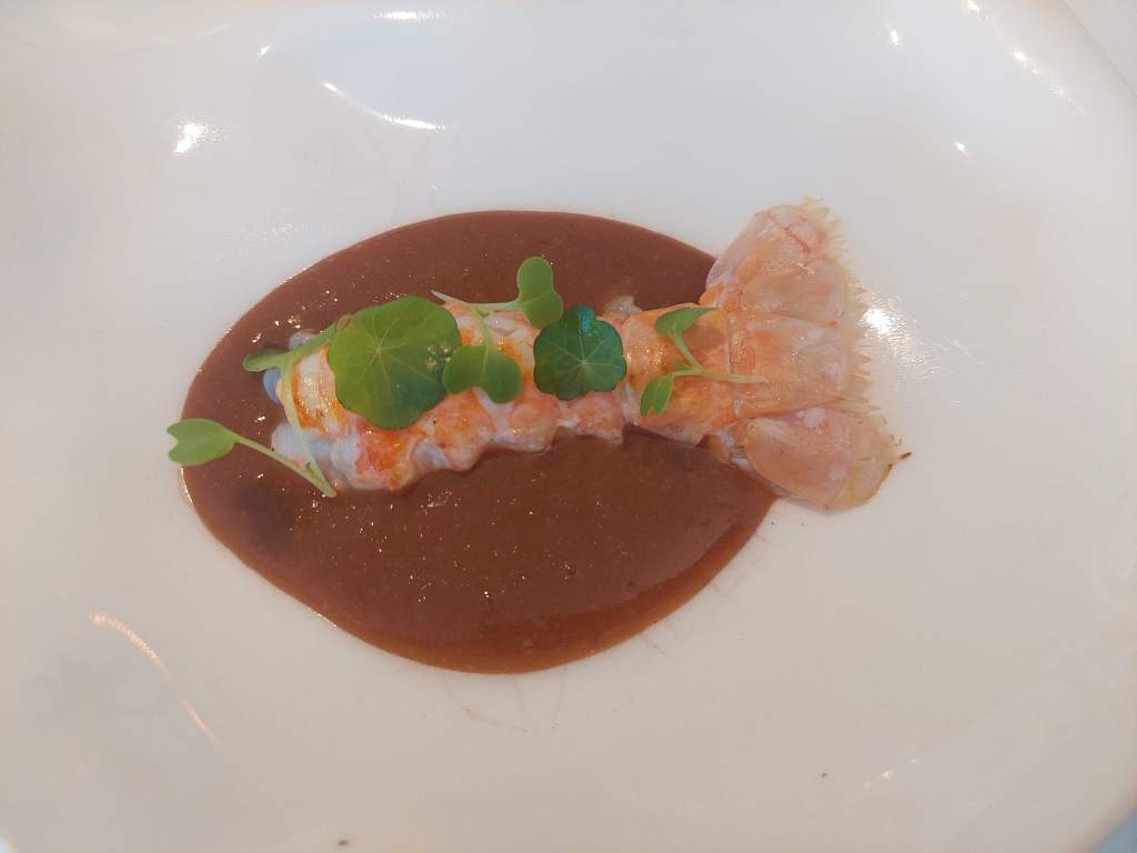 Los platos añadidos al menú fueron la cigala en tres pases: primero el cuerpo con salsa americana elaborada con Jack Daniels, luego la cabeza gratinada con salsa holandesa, y, por último, una infusión con los corales y recortes de la cigala.