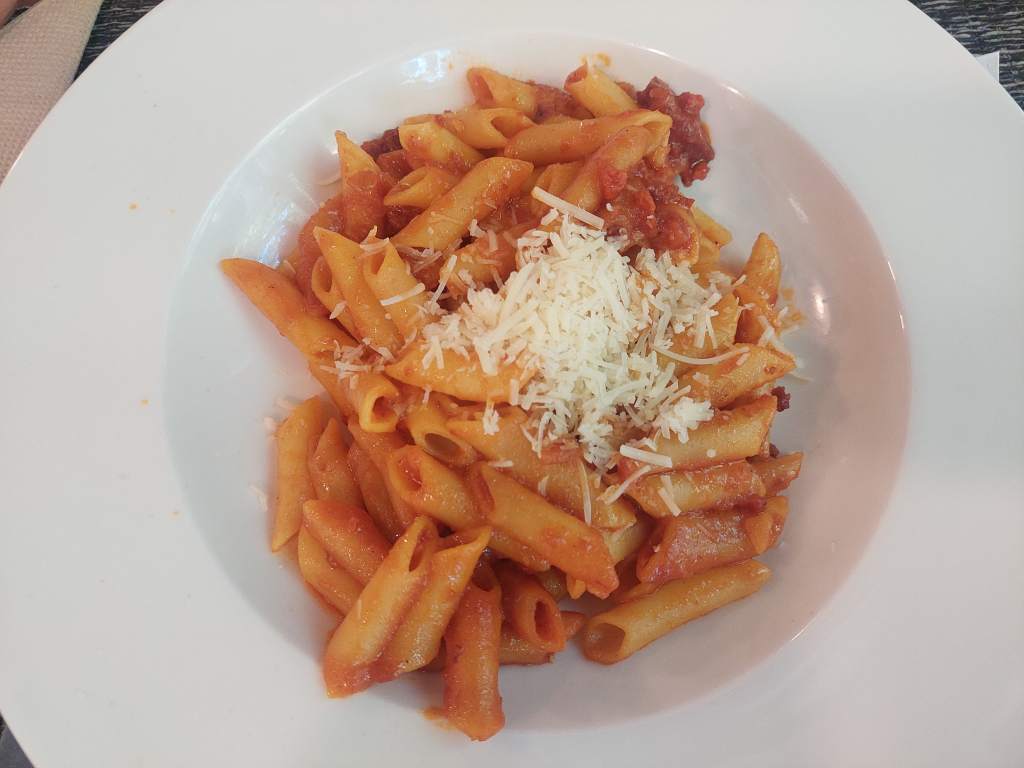 Para el segundo menú escogimos unos macarrones con chorizo. ¿Hay plato más clásico para un menú del día? Muy correctos.