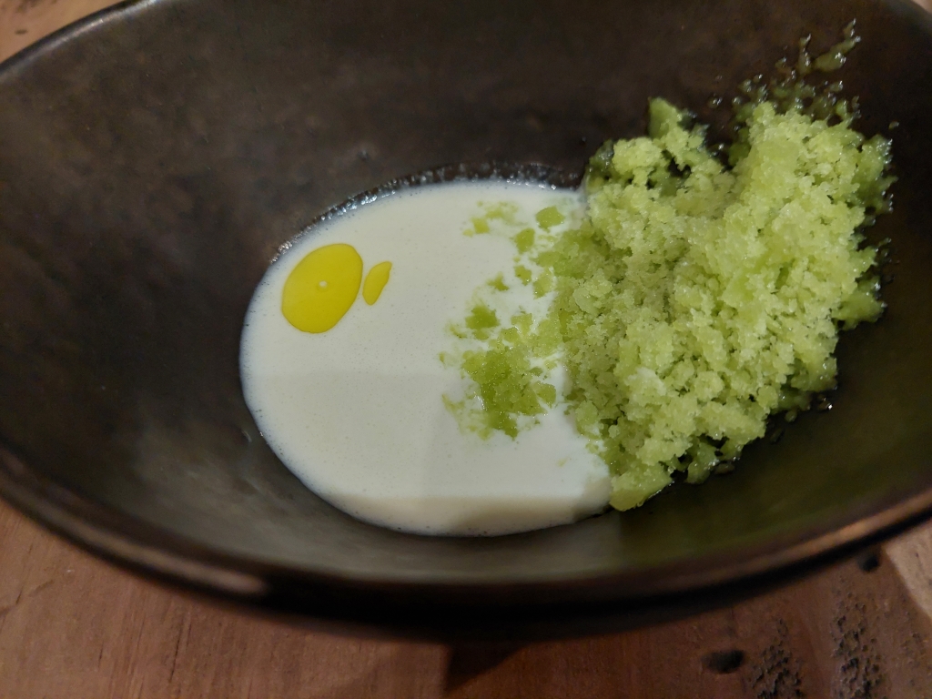 Apio y merluza. Con una particular espuma de pilpil. Quizá fue uno de los pases que menos me emocionó.