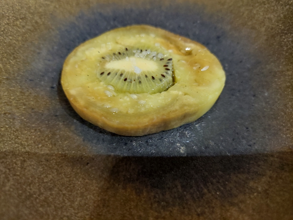 Pimiento verde y ostra lle d’Oleron asada. Otra arriesgada combinación de sabores.