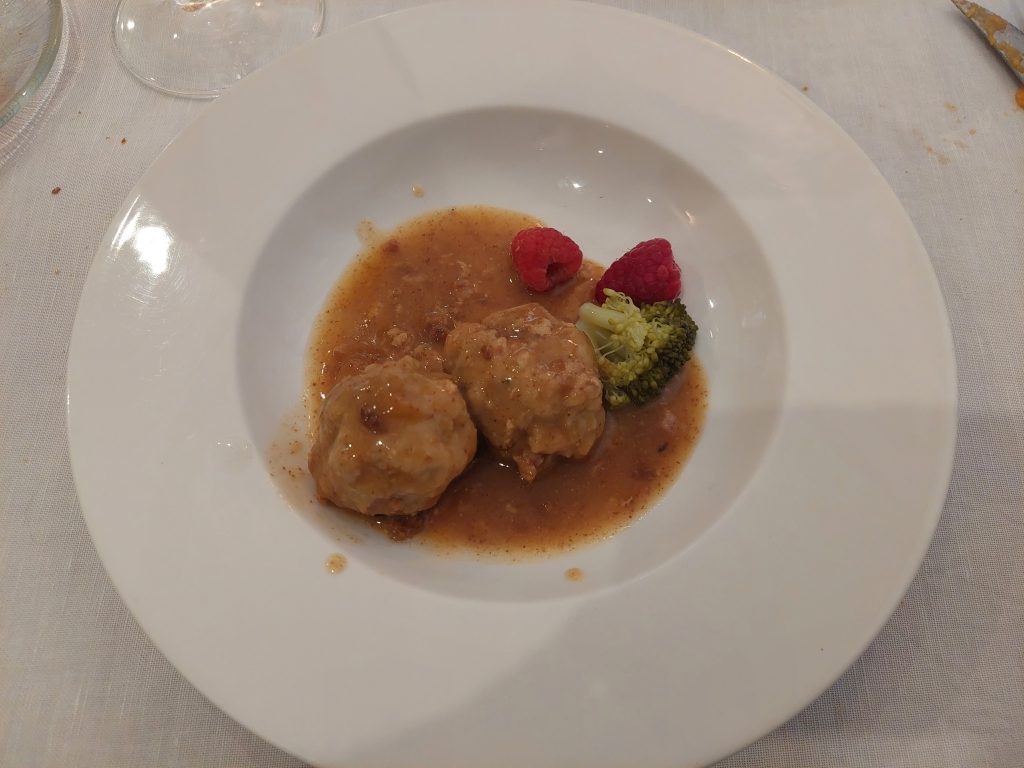 A continuación sus albóndigas de ternera y cabrito. También estupendas. Como plato principal tomamos el asado de cabrito, que fue el que menos me gustó, quizá no era una pieza demasiado agraciada, o que no tenía ganas de chupar los huesos, que es lo que se merecía. Un detalle muy de agradecer es que pedimos todo para compartir y nos emplataron individualmente cada ración a cada comensal.