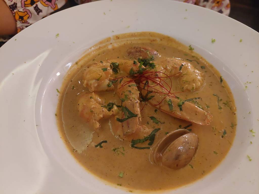 Curry rojo de pescado blanco y almejas, con arroz de jazmín. Un guiño asiático que demuestra la versatilidad de la cocina del restaurante.