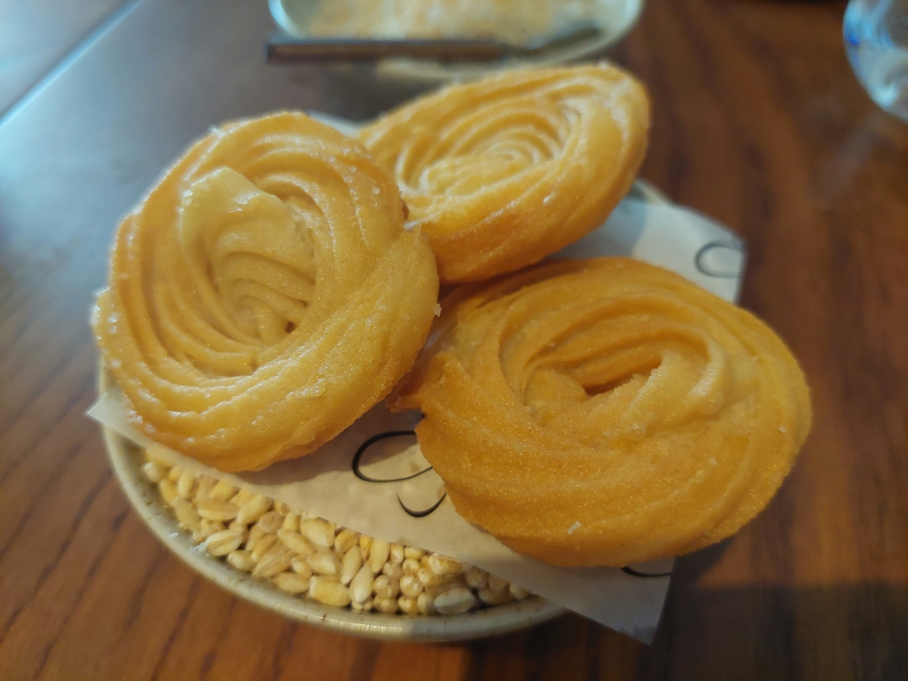 Comenzamos por su churro de queso que viene acompañado de una crema de queso con mermelada de cebolla morada. Con una masa muy bien frita a la que se unta la crema de queso y la mermelada, resulta un entrante muy sabroso.
