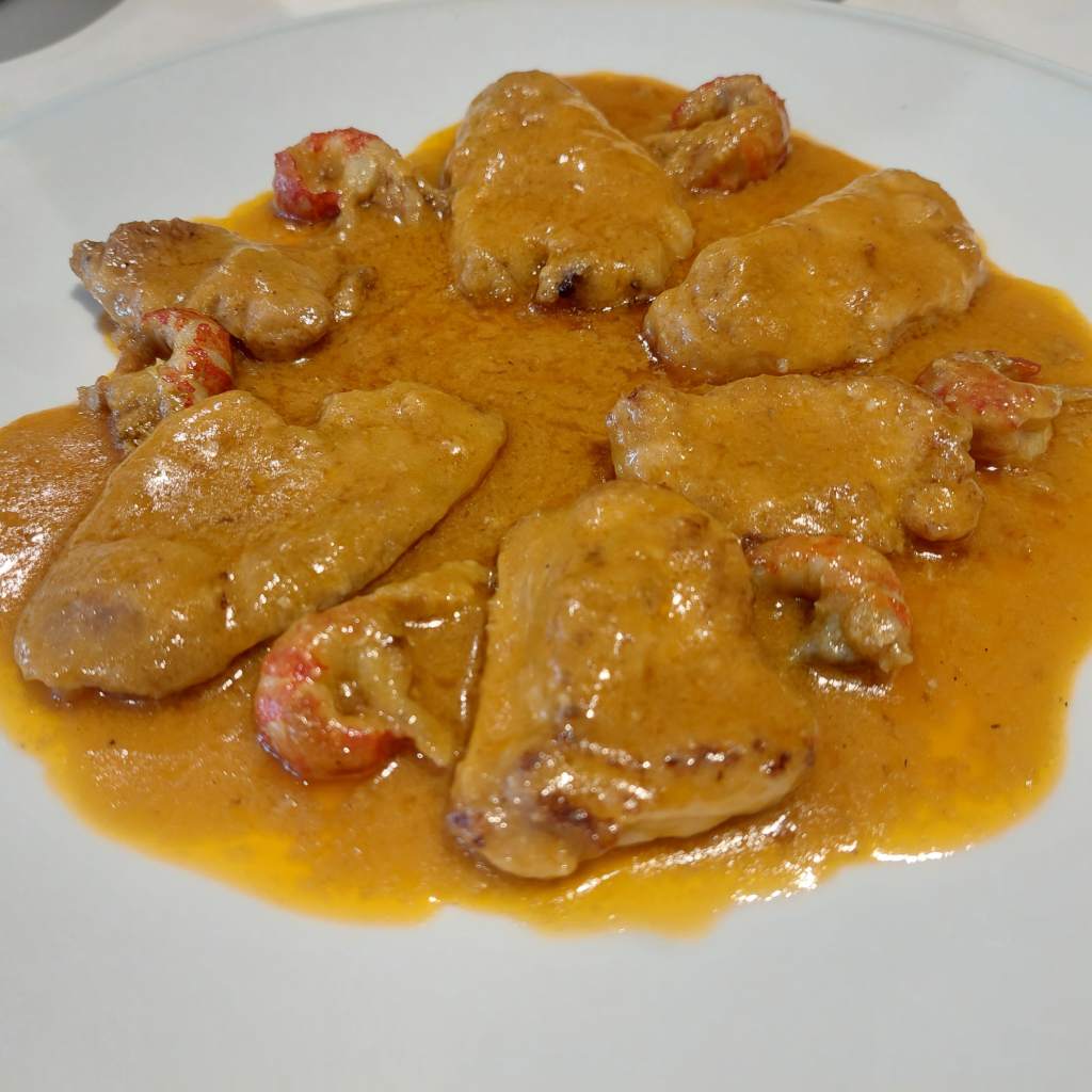 A continuación pedimos un platazo inesperado: mollejas de ternera blanca con cangrejo. Las mollejas estaban en su punto exacto, y el maridaje con el sabor delicado del cangrejo, rematado con una salsa espectacular, fue una auténtica sorpresa.