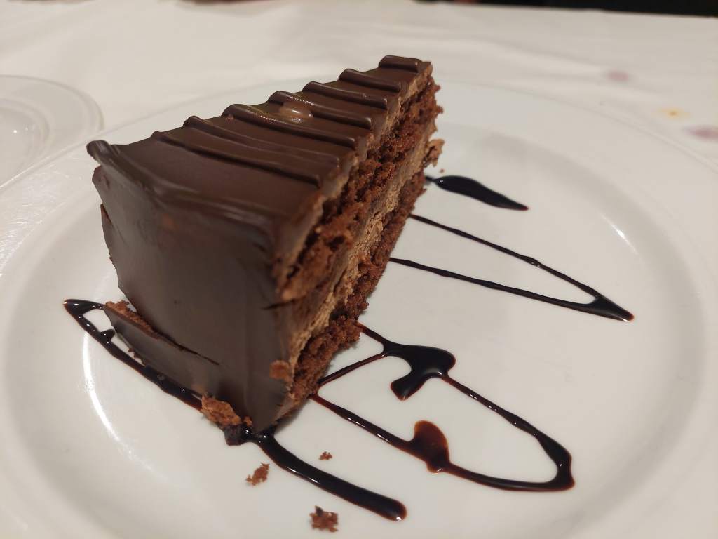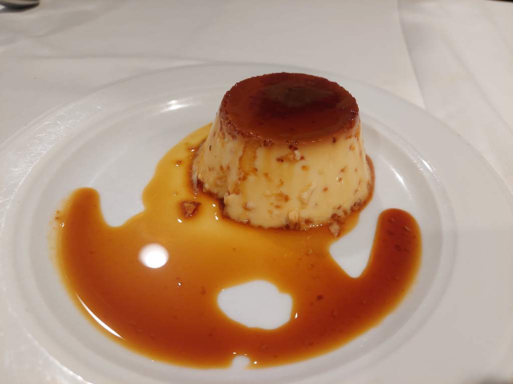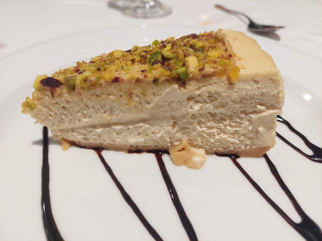 Para los postres, tarta de chocolate, de queso con pistacho (la que más me gustó), arroz con leche y un estupendo flan casero.