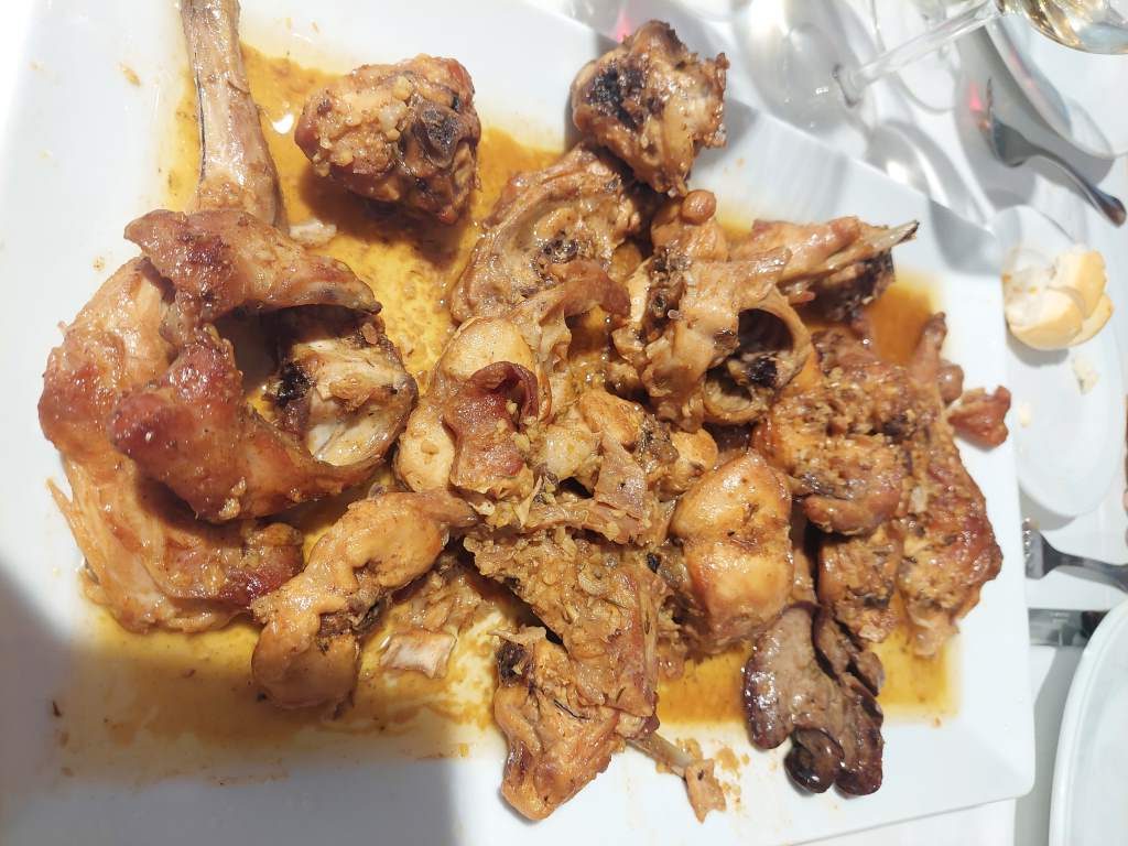 Otro de los platos estrellas de la casa: el conejo al ajillo.