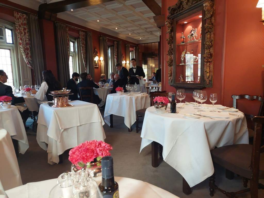 El segundo motivo es su puesta en escena. Creo no hay restaurante en España que le iguale: la mantelería de hilo, los cubiertos de plata de ley, la preparación en sala de los platos, las vitrinas con porcelana de Nynphenburg, el escabel que ponen a las señoras para que apoyen el bolso… en fin, multitud de detalles “de otra época” que no se esperan en ningún otro sitio que no sea éste.