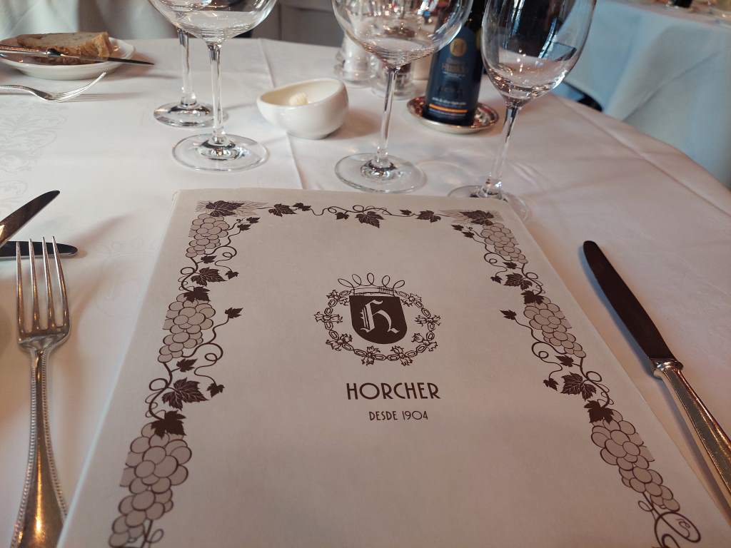 Horcher es un restaurante único por varios motivos. Pocos restaurantes a nivel mundial tienen más historia desde su apertura hace más de 120 años en Berlín por Gustav Horcher en 1904 y su traslado a España en plena Segunda Guerra Mundial por su hijo Otto para crear el restaurante más emblemático de la capital. Nunca más apropiado el dicho “Si las paredes pudiesen hablar”. Actualmente la familia sigue dirigiendo el restaurante de mano de la bisnieta, Elisabeth Horcher. No me extiendo más en esta reseña sobre curiosidades históricas del restaurante, que incluso tiene un libro al respecto.