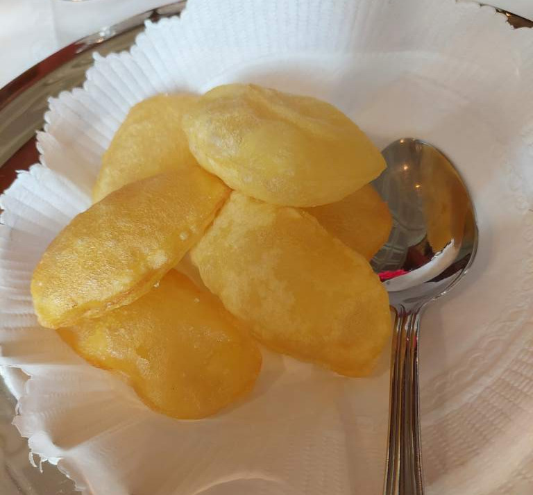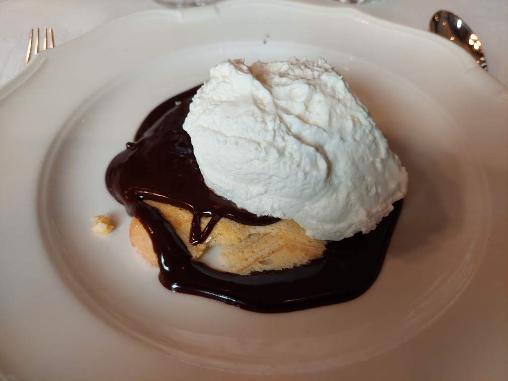 El segundo motivo es su puesta en escena. Creo no hay restaurante en España que le iguale: la mantelería de hilo, los cubiertos de plata de ley, la preparación en sala de los platos, las vitrinas con porcelana de Nynphenburg, el escabel que ponen a las señoras para que apoyen el bolso… en fin, multitud de detalles “de otra época” que no se esperan en ningún otro sitio que no sea éste.