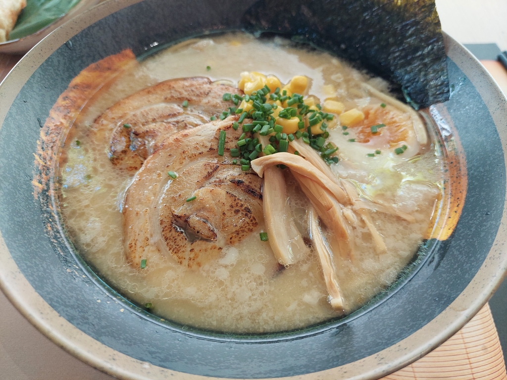 Elegí el menú Miiso ramen con unos rollitos de pollo de entrante. Los rollitos me parecieron muy flojos, bien fritos pero con escaso sabor. En cuanto al miso ramen, es una sopa que lleva fideo ramen, unos medallones de carne de cerdo llamado chashu, medio huevo pochado, verduras y el caldo de cerdo y pollo con salsa especial de miso. No estuvo mal, pero tampoco me llamó la atención.
