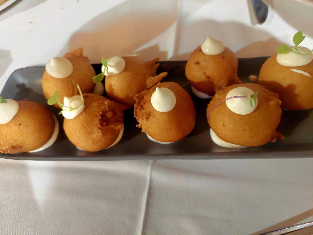 Buñuelos cremosos de bacalao con alioli.