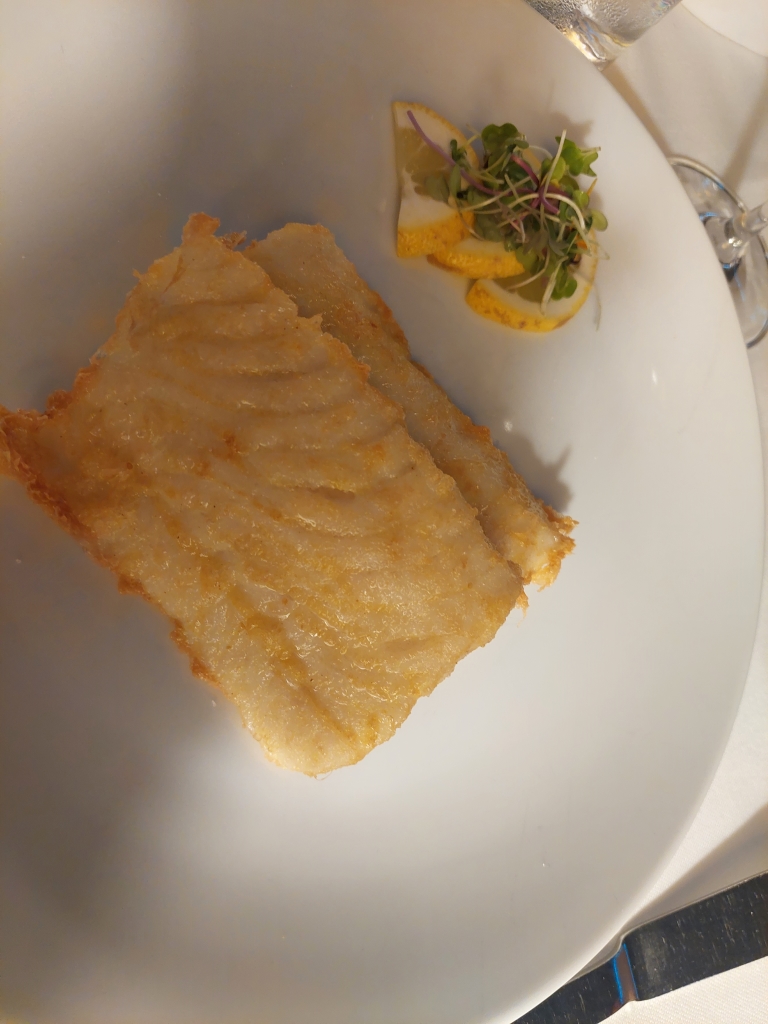 Los principales fueron un estupendo cogote de merluza, uno de los cortes de este pescado que más me gustan, muy jugoso y lleno de sabor.