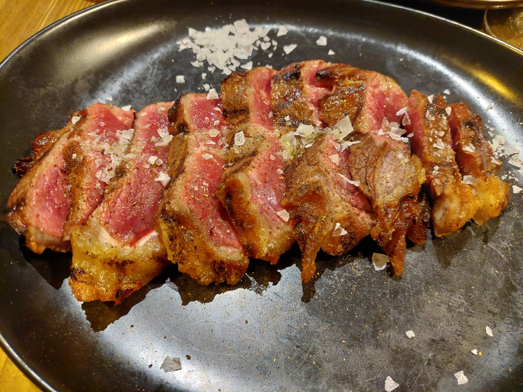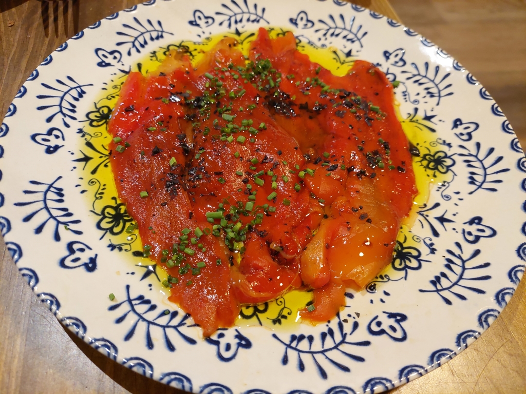 De principal, su lomo de vaca charolesa (a 98€/kg) acompañada de unos pimientos realmente buenos. La carne en sí, normalita. Nada especial.