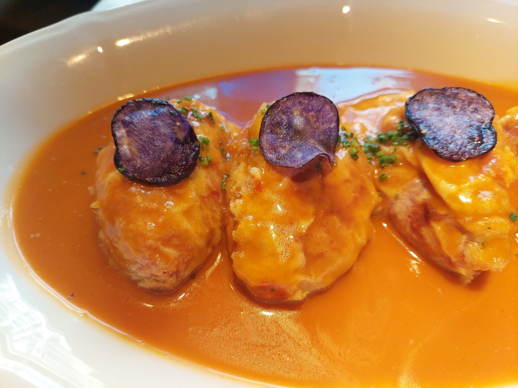 Comenzamos con unos pimientos rellenos de hongos y langostinos que estaban espectaculares.