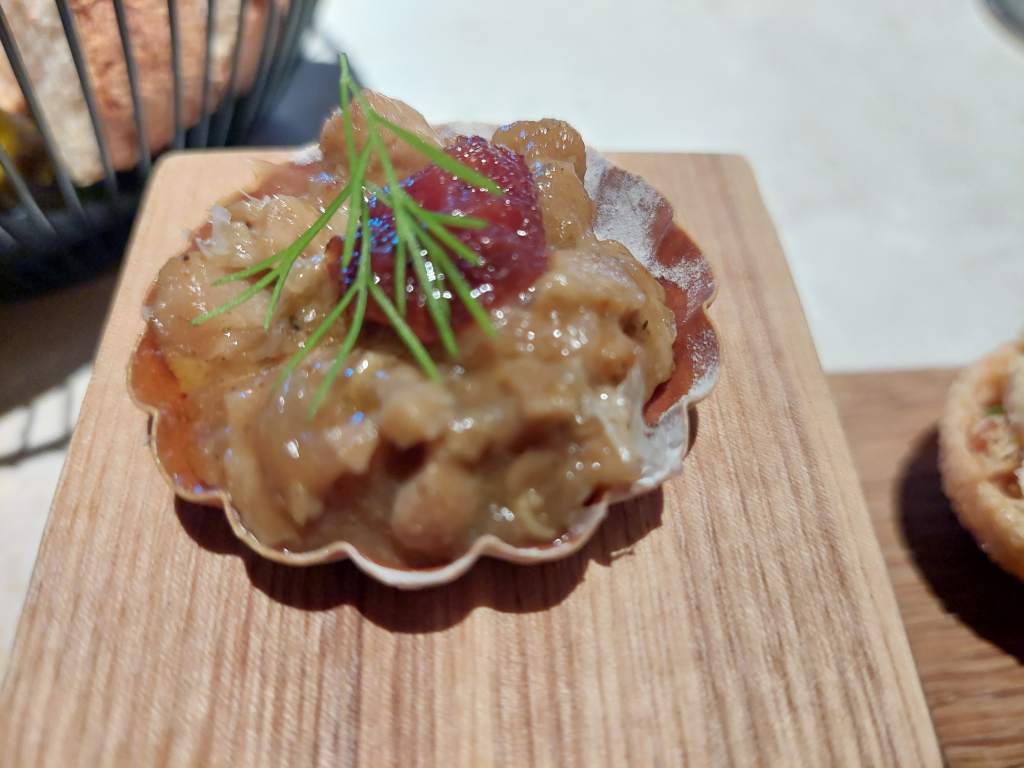 Tartaleta de criadillas, queso Comté y tomate cherry.