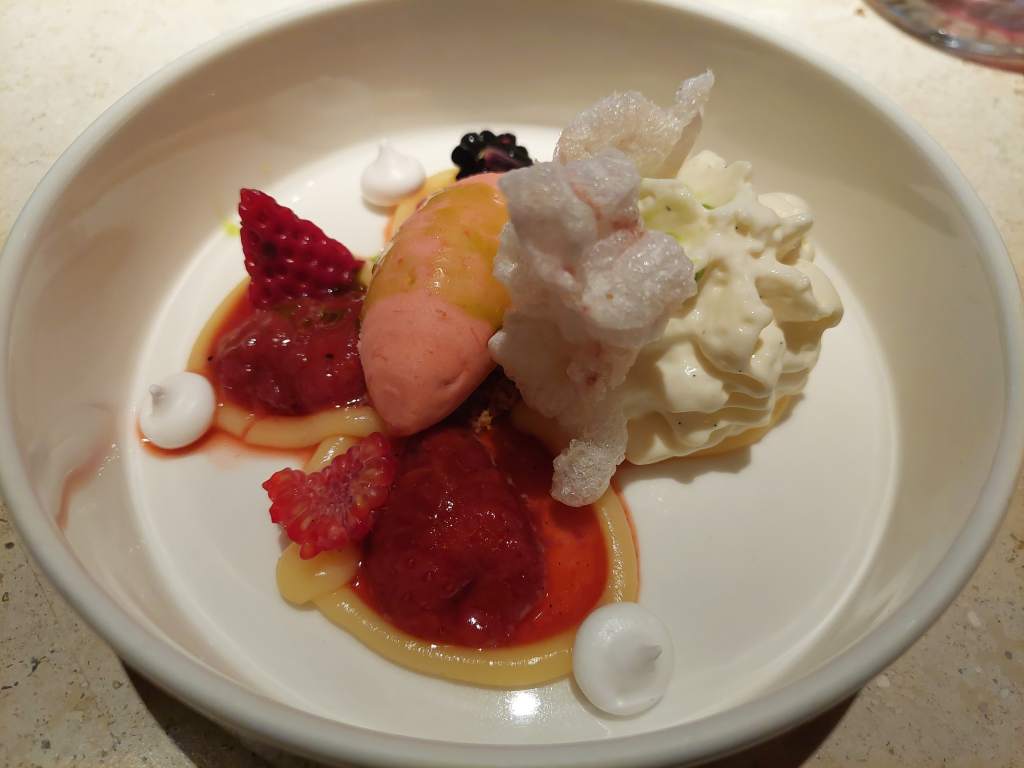 El postre fueron Fresas, albahaca y haba tonka. Acompañamos el postre con una sidra de hielo, que no había probado antes.
