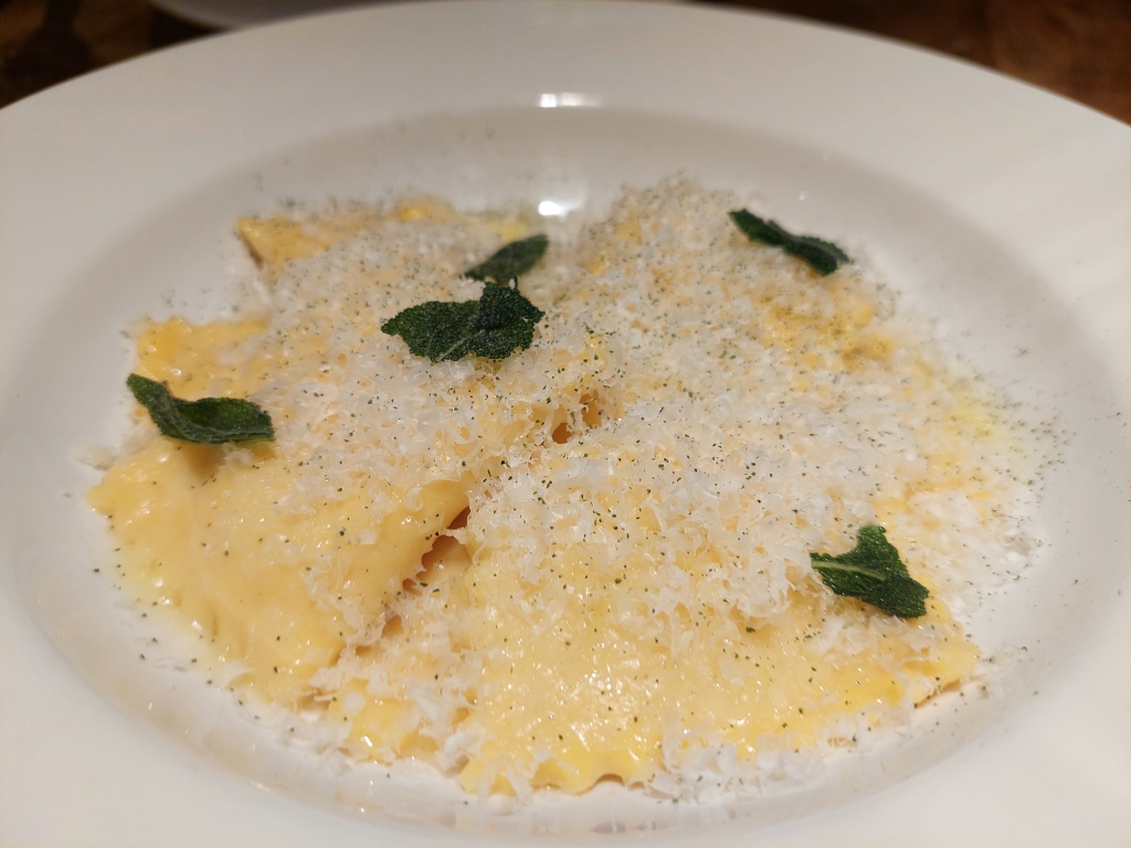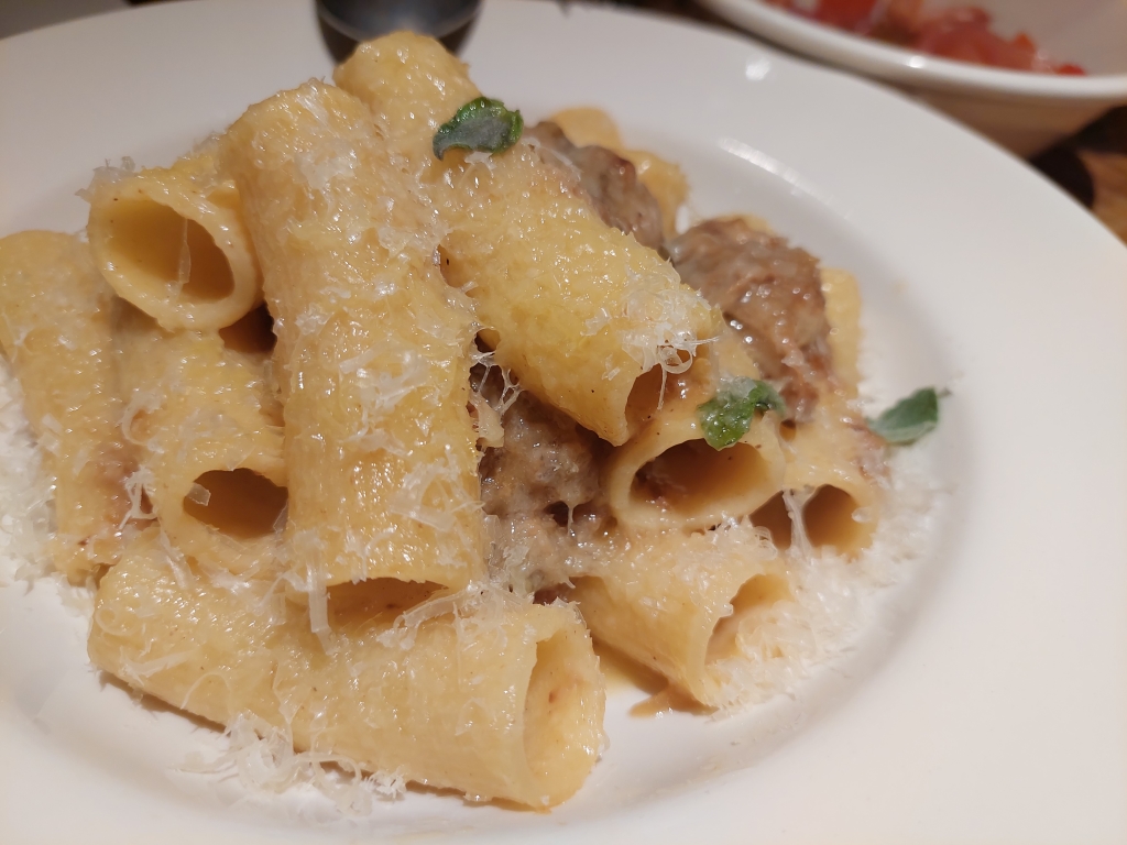 Continuamos con rigatoni genovese, plin de conejo y agnolotti rellenos de piña.