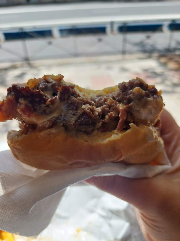 En total pagué 19€ por el menú, que incluye las patatas y la bebida. He de decir que la hamburguesa estaba jugosa y me gustó. Otra cuestión es que estos sitios, en general, no me convencen y no creo que vuelva. Un detalle “feo” es que no te sirven la hamburguesa ni en una bandeja, te dan una bolsa (se nota que parece que solo potencial el delivery) y sobre el papel que la envuelve te la tienes que comer.