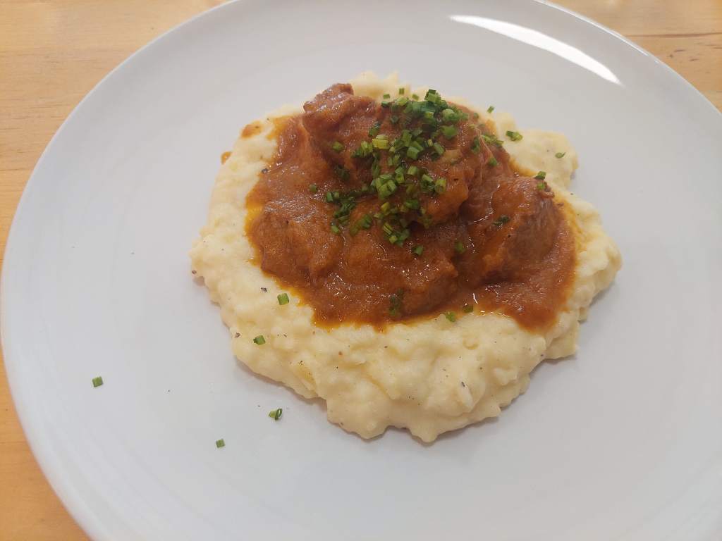 – Estofado de magro con puré de patata. Conté seis trozos de carne.