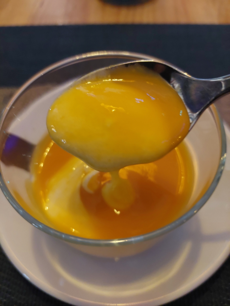 De postre, yogur con mango. Todo muy correcto.