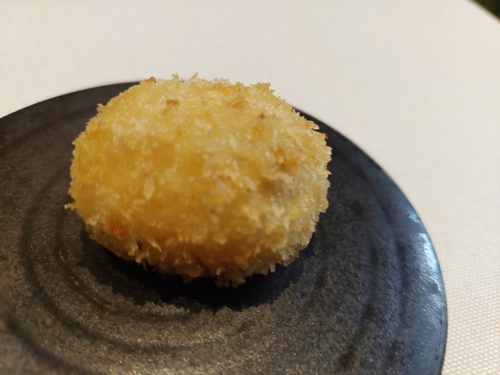 A continuación su famosa croqueta de jamón ibérica, ganadora de numerosos premios y que ya había comido en otras ocasiones. Extremadamente cremosa, muy rica siempre.