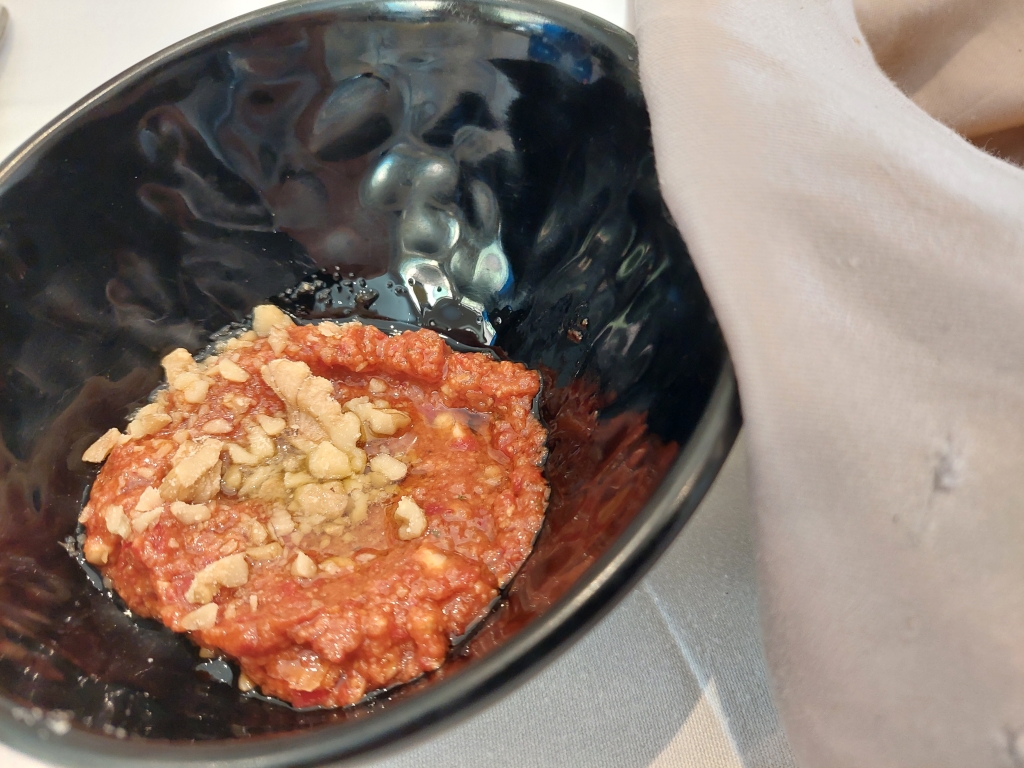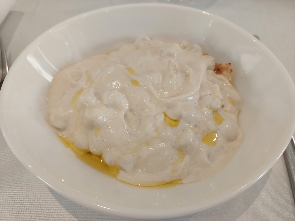 De primero elegí Msabbaha, garbanzos con crema de humus, tahine y yogur, cubierto de aceite de ajo y un toque de comino.
