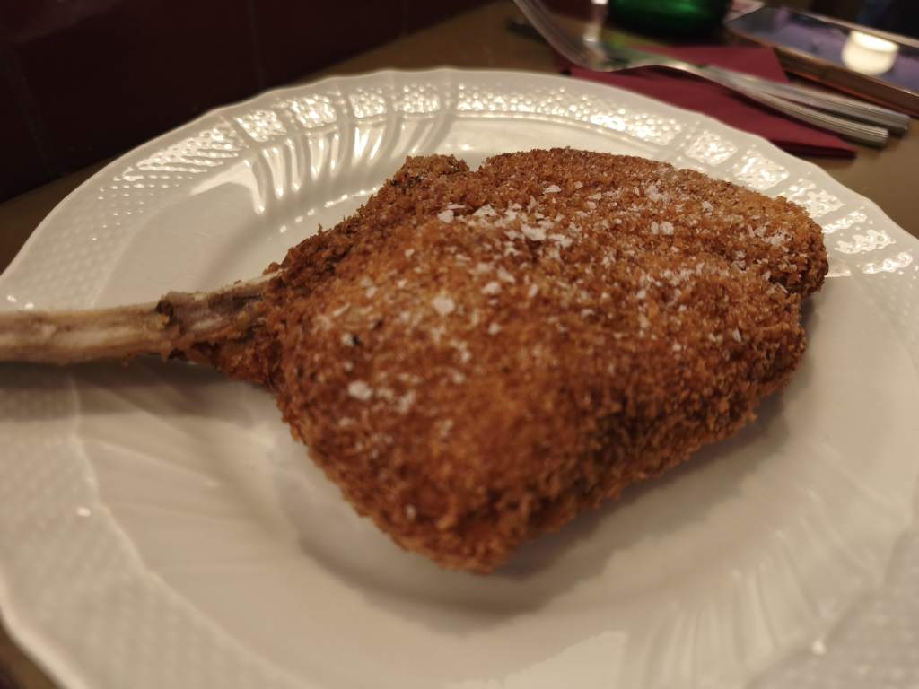 Los principales fueron una estupenda cotoletta milanesa acompañada de ensalada.