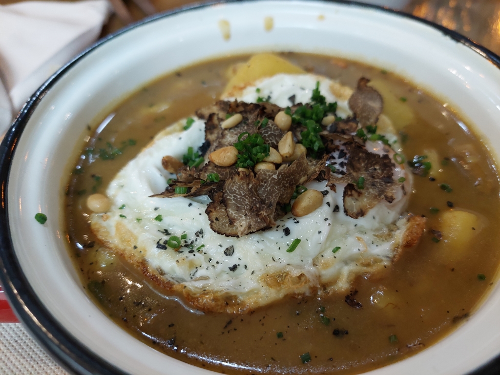 Espectacular este Guiso de niscalos con patatas y huevo frito de Cobardes y Gallinas.