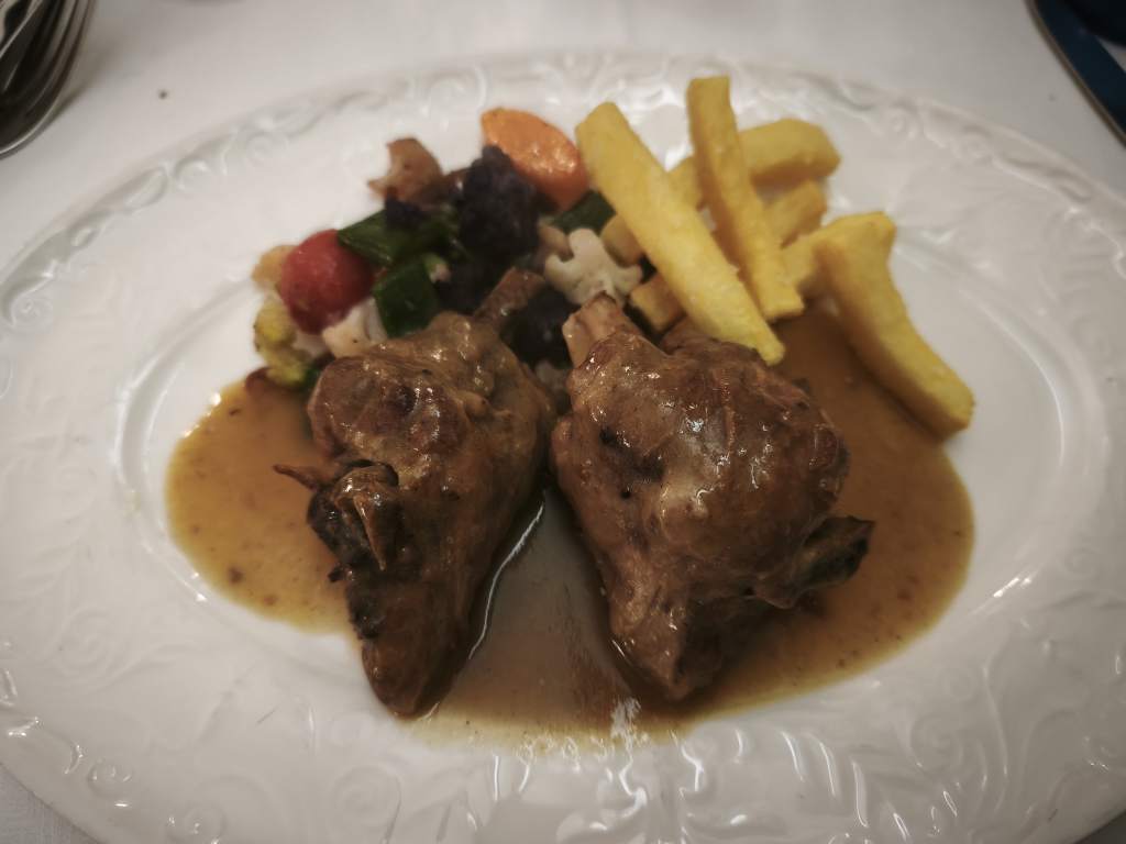 Una de las especialidades que más ganas tenía de probar en este restaurante son sus escabeches, que había visto en la web pero no así en la carta en papel. No tenían perdices, ya que su temporada es octubre, pero sí pichones de nidal en escabeche castellano, así que fuimos a por ellos. Un acierto. Qué sabor tan delicado con la carne del ave. Platazo.
