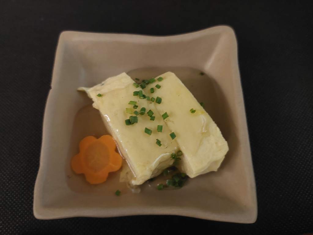 Comenzamos con un aperitivo cortesía de la casa: tamagoyaki (tortilla japonesa enrollada) con una salsa espesa de dashi